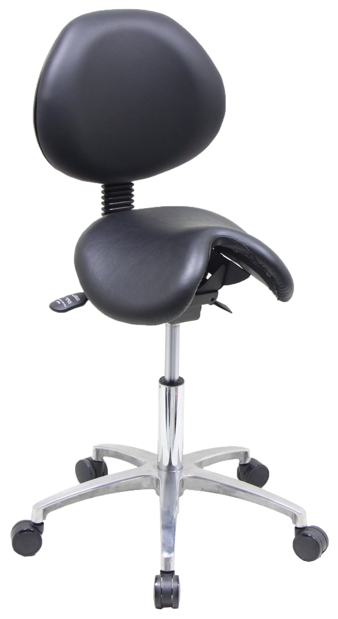 Ergonominen satulatuoli istuimen kallistuksen säädöllä. Pehmustettu, kallistettava istuin. Selkänojassa korkeus- ja kallistussäätö. Istuinverhoilu nahkaa. Istuimen pohjamateriaali metallia.... Lue lisää