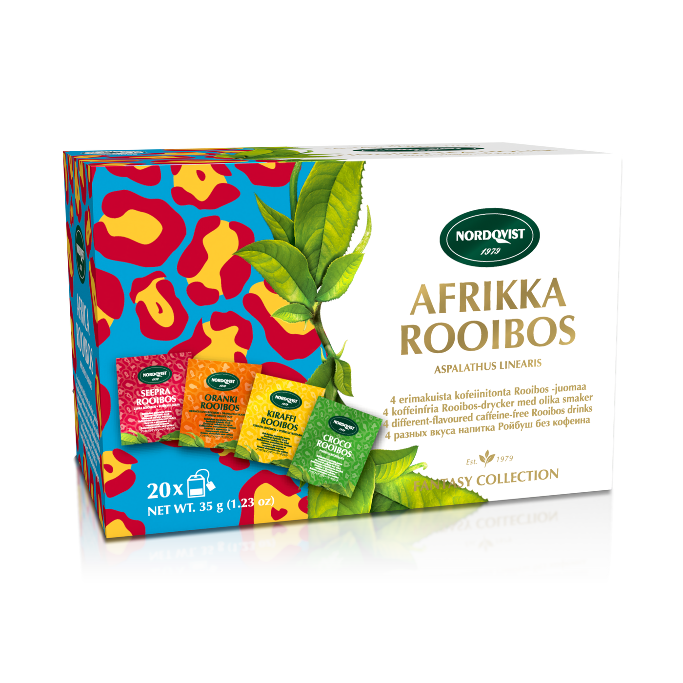 Neljän maun kofeiiniton rooibos-lajitelma.