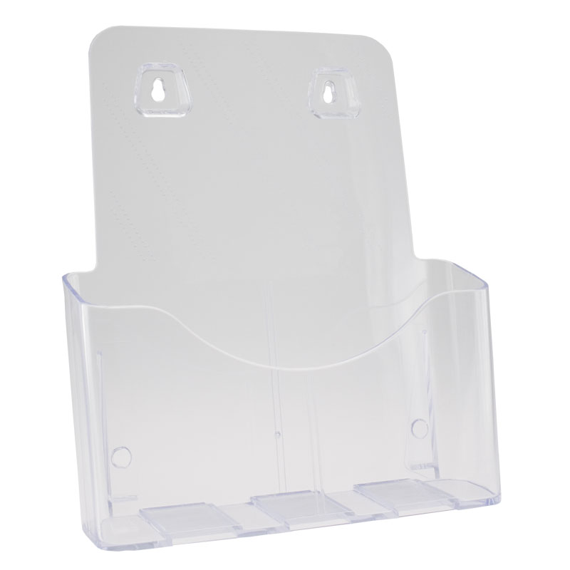 Esitejalusta pystysuunnassa A4, 1 lokero. Valmistettu 100% pleksistä. Reiät seinään kiinnitystä varten. Sopii hyvin kauppoihin, toimistoihin, vastaanottoon jne.