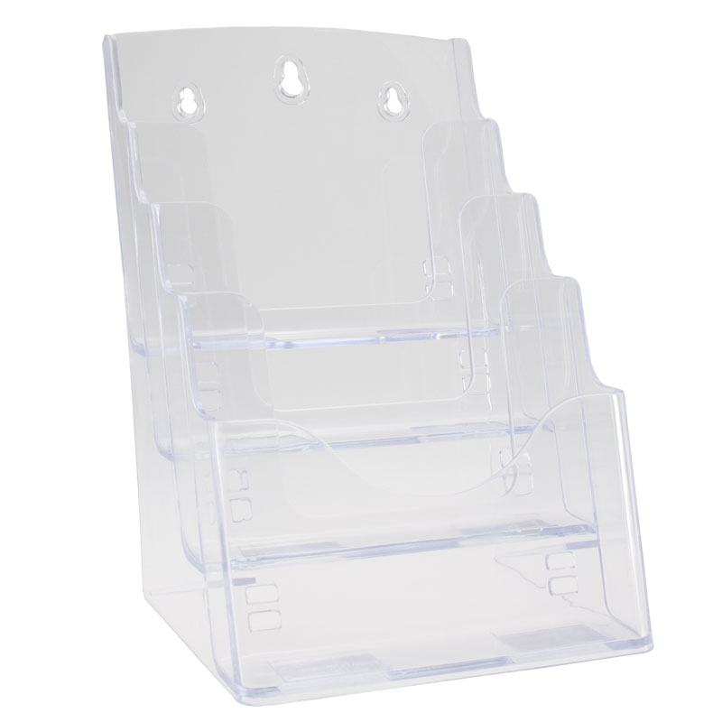 Esitejalusta pystysuunnassa A5, 4 osastoa. Valmistettu 100% pleksistä kestävyyden parantamiseksi. Reiät seinään kiinnitystä varten. Sopii hyvin kauppoihin, toimistoihin, vastaanottoon jne.... Lue lisää
