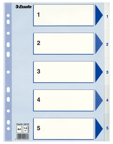Esselte rekisteri 1-5 A4 muovi valkoinen