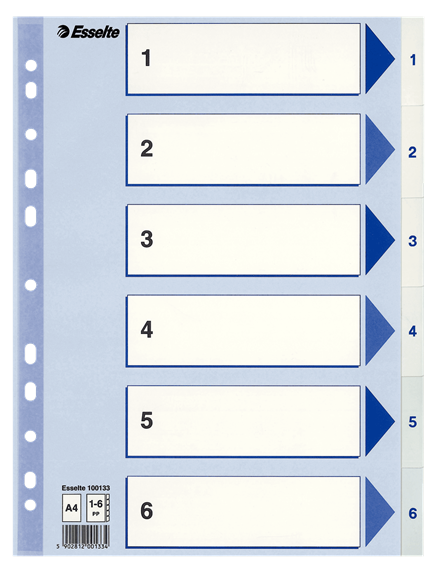 Esselte rekisteri 1-6 A4 muovi valkoinen