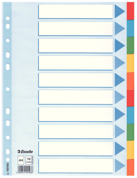 Hakemistoreksiteri värikkäänä väriyhdistelmänä. Valmistettu kierrätetystä kartongista.
