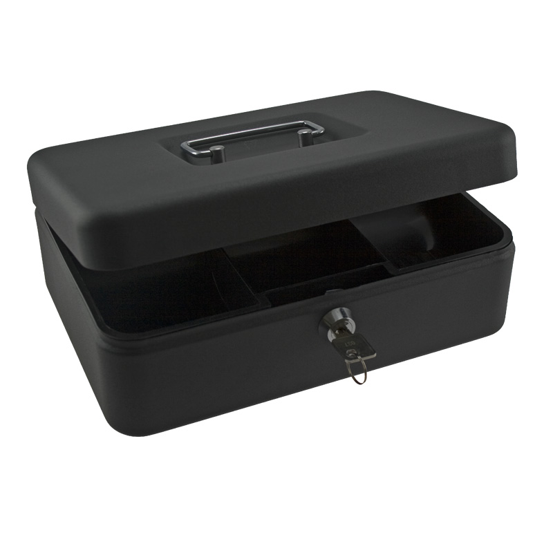 Lippaan koko: 250x180x90mm. Lippaassa erillinen lokerikko kolikoille. Mukana kaksi avainta.