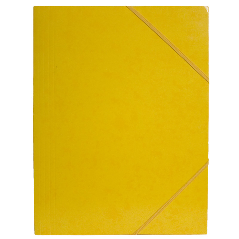Kulmalukkokansio A4, kiiltopahvia, jossa on 3 läppää ja kuminauhat, jotka pitävät paperisi paikallaan.