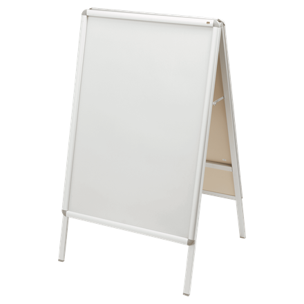 A-teline, jossa julisteet ja ilmoitukset ovat heijastamattoman PVC-suojamuovin alla säänkestävässä suojassa. Kätevät alumiini snap-kehykset tekevät julisteen
