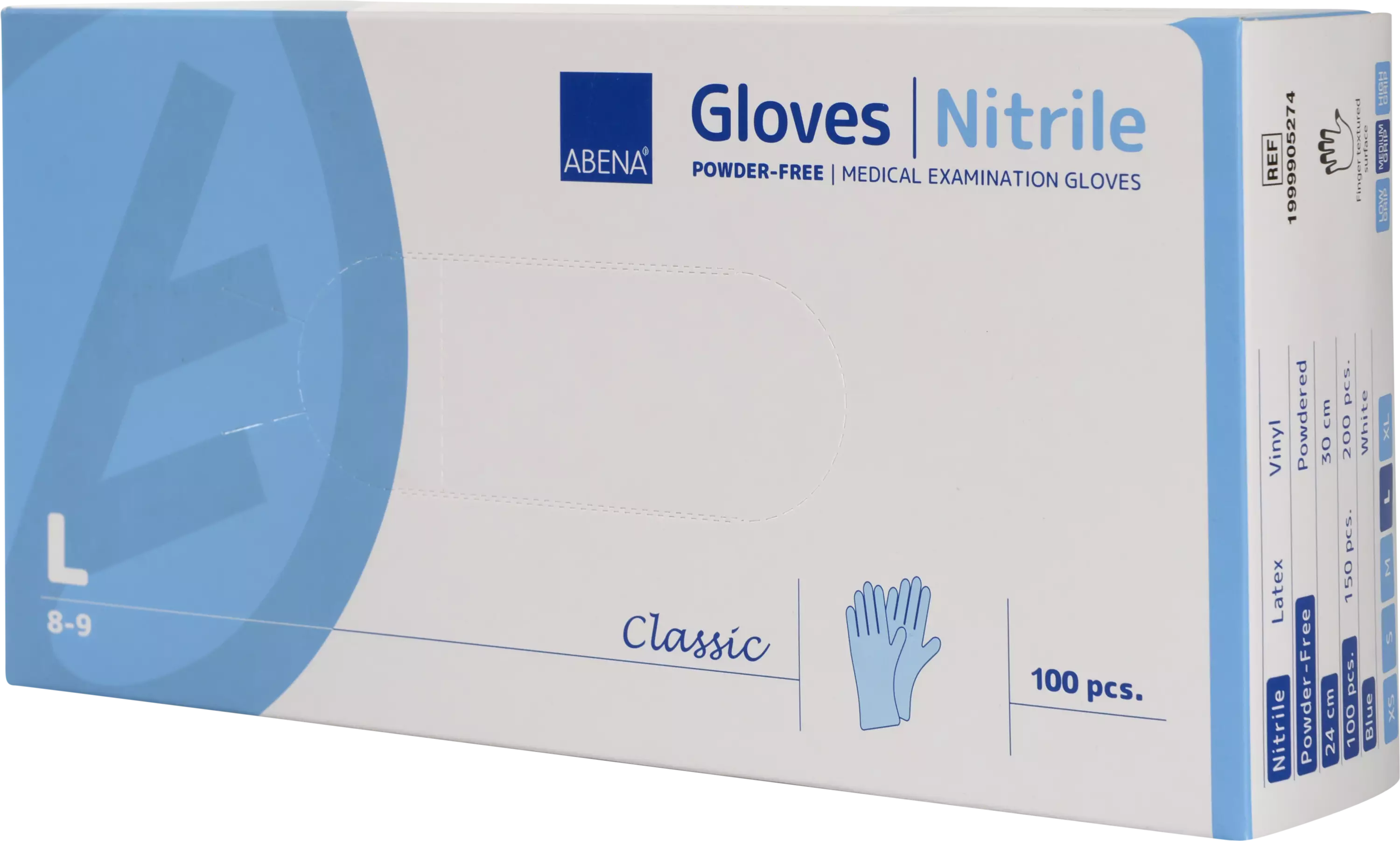 ABENA Classic nitriilikäsine L sininen puuteroimaton Koko: L Pakkauskoko: 100 kpl/pkt, 10 pkt/ltk