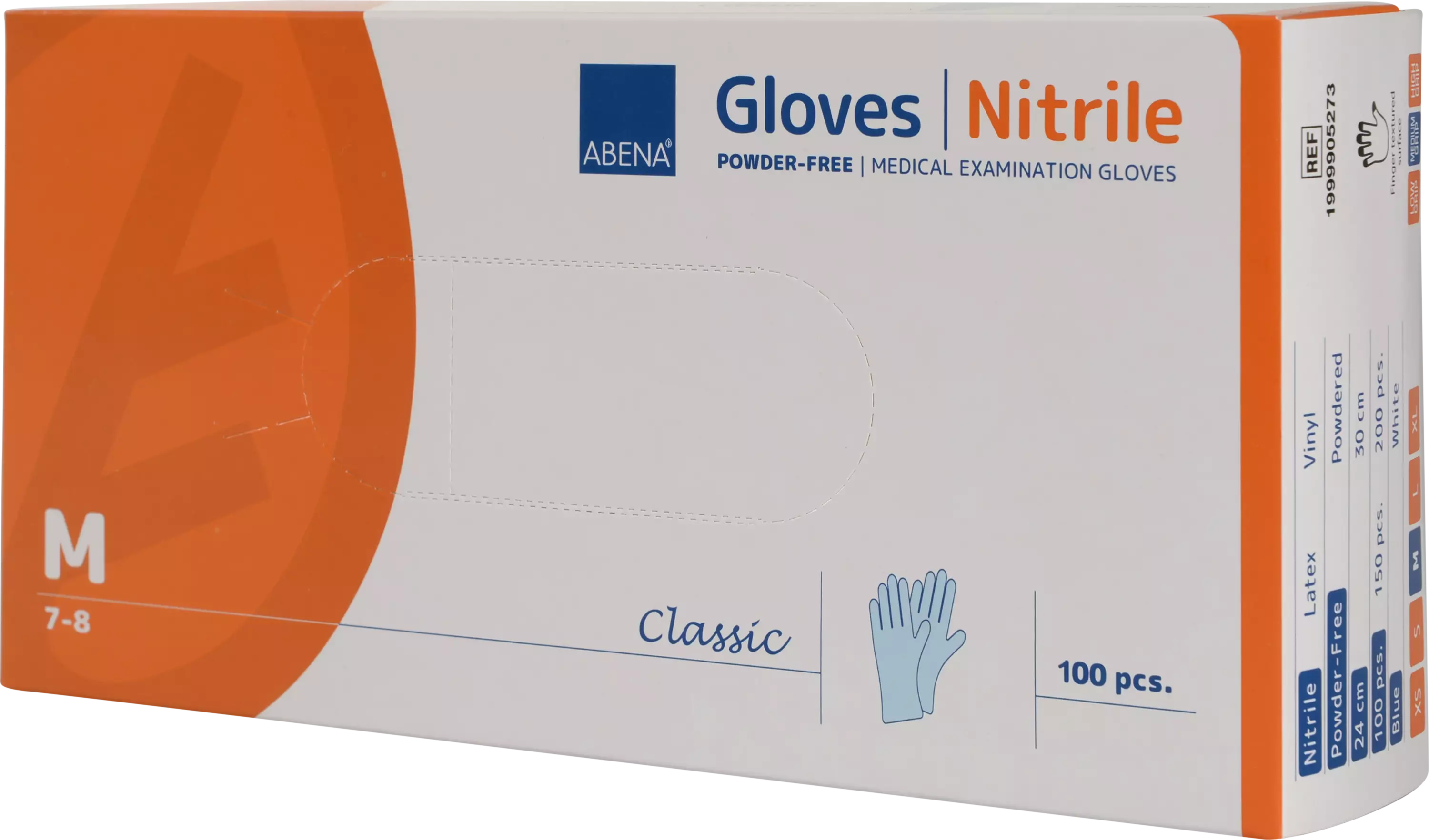 ABENA Classic nitriilikäsine M sininen puuteroimaton Koko: M Pakkauskoko: 100 kpl/pkt, 10 pkt/ltk