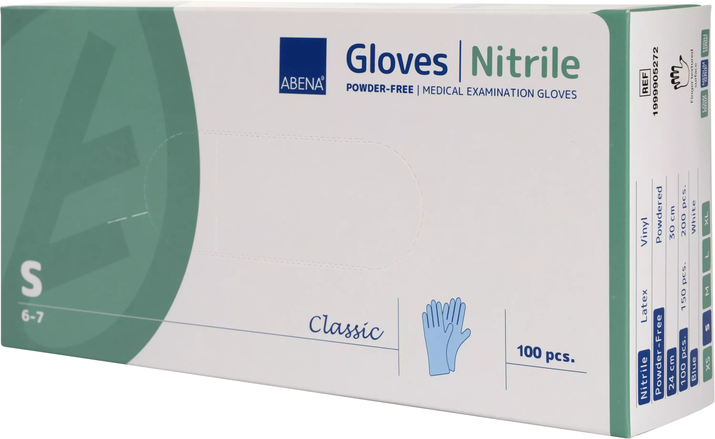 ABENA Classic nitriilikäsine S sininen puuteroimaton Koko: S Pakkauskoko: 100 kpl/pkt, 10 pkt/ltk