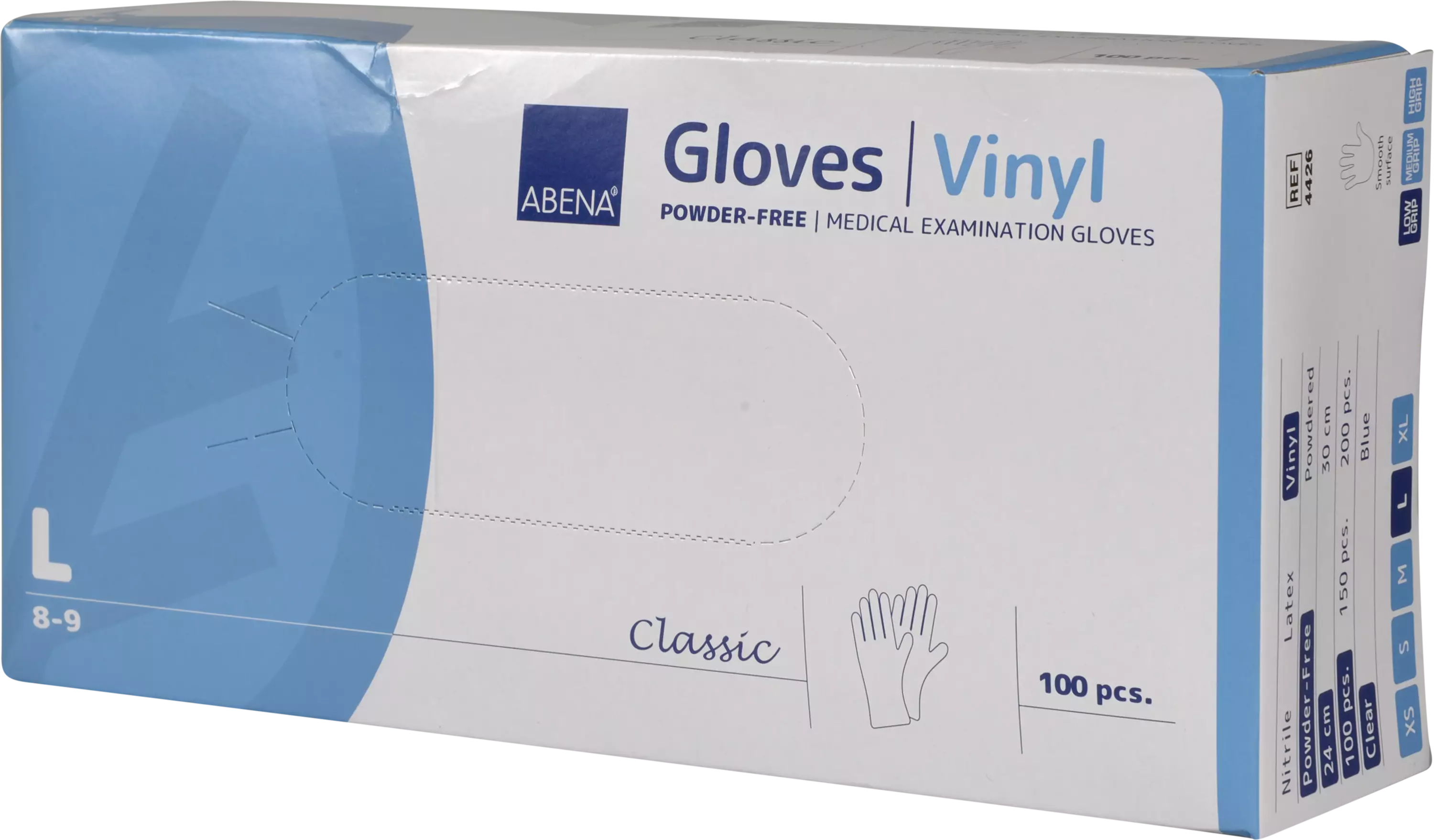 Vinyylitutkimuskäsine, jossa on sileä pinta ja joka ei sisällä lateksiproteiinia tai kiihdyttimiä.