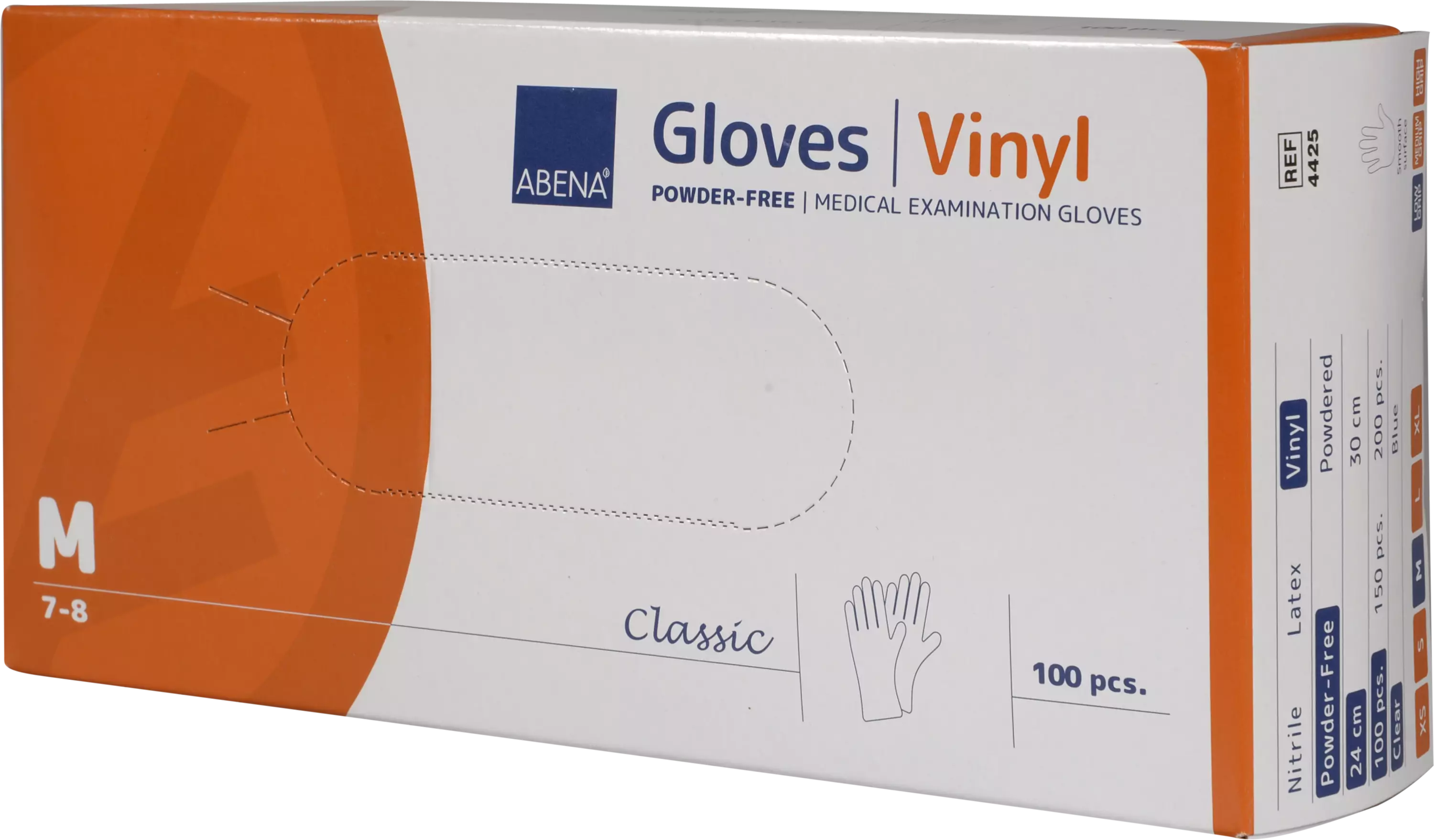 Vinyylitutkimuskäsine, jossa on sileä pinta ja joka ei sisällä lateksiproteiinia tai kiihdyttimiä.