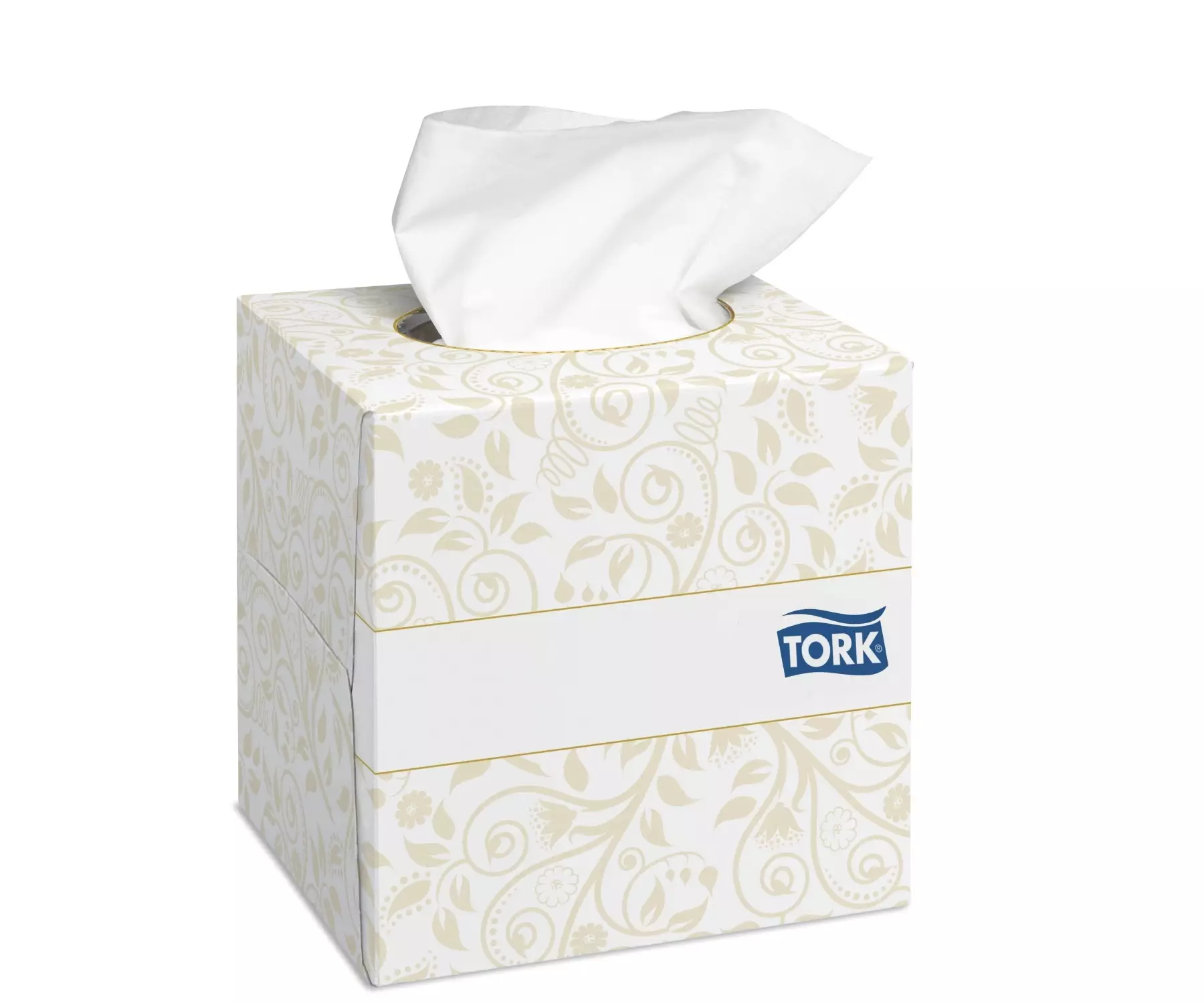 Tork Extra Soft Saniteettipyyhkeet on pakattu moderniin kuution malliseen pakkaukseen, joka voidaan sijoittaa tarpeen mukaan.