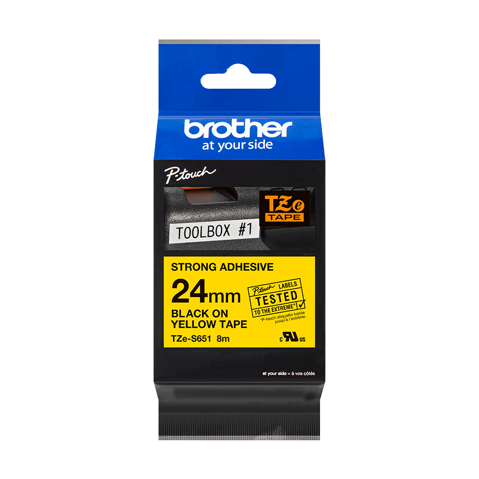 Brother lujasti kiinnittyvä tarranauhakasetti 24mm musta/keltainen