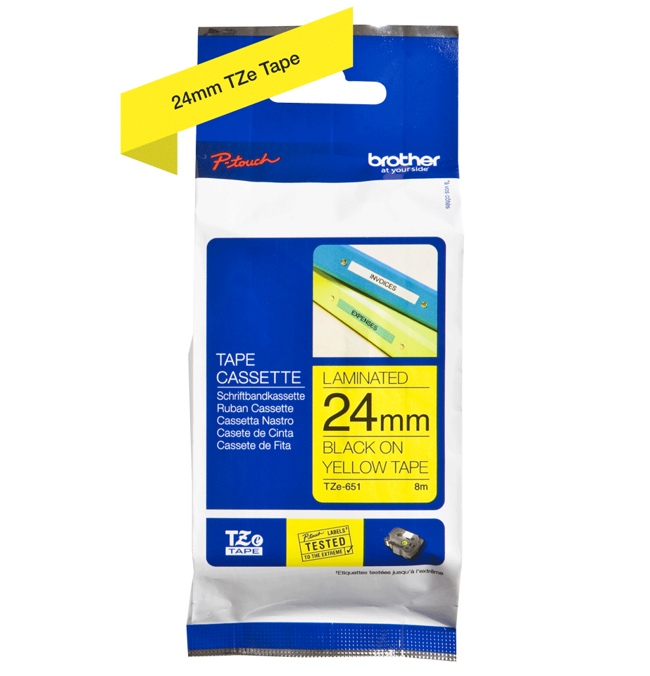 Brotherin korkealaatuinen alkuperäinen tarranauha. Kestävään ja selkeään merkintään. Leveys 24 mm, pituus 8 m.