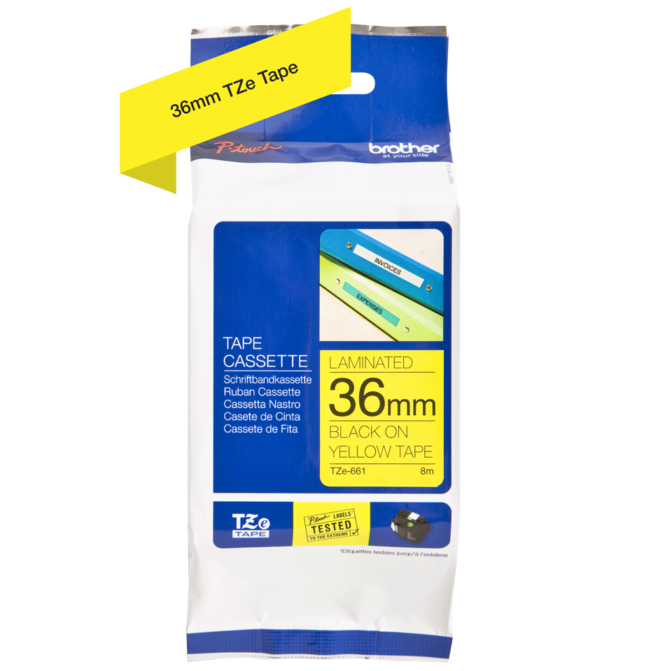 Brotherin korkealaatuinen alkuperäinen tarranauha. Kestävään ja selkeään merkintään. Leveys 36 mm, pituus 8 m.