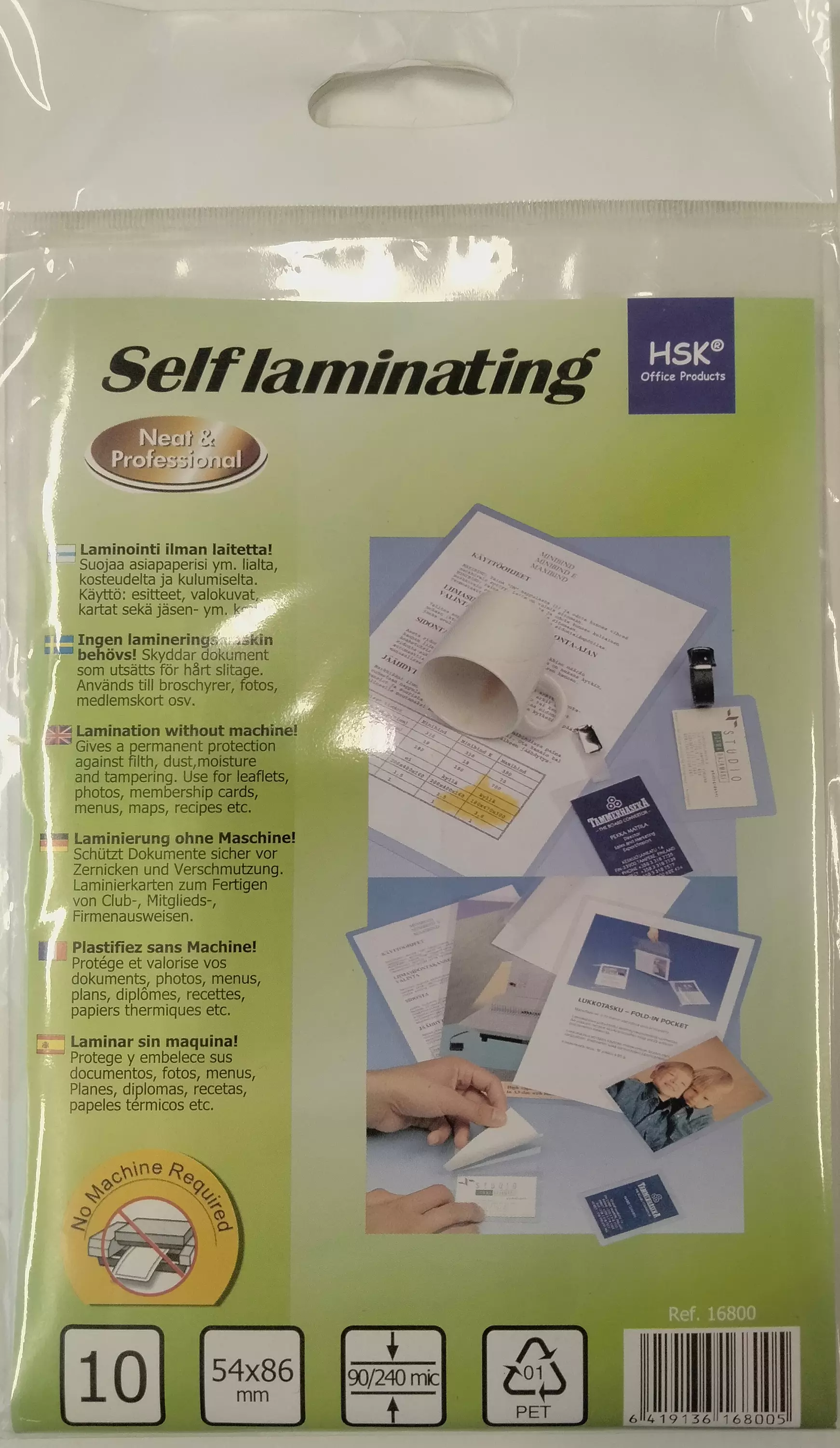 HSK Itselaminoiva tasku 54x86mm 90/240mic