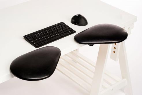 Kumpikin tuen osa voidaan kiinnittää helposti pöydän reunaan. Tuki helpottaa oikean työskentelyasennon löytämistä sekä vähentää niskan, hartioiden, käsivarsien