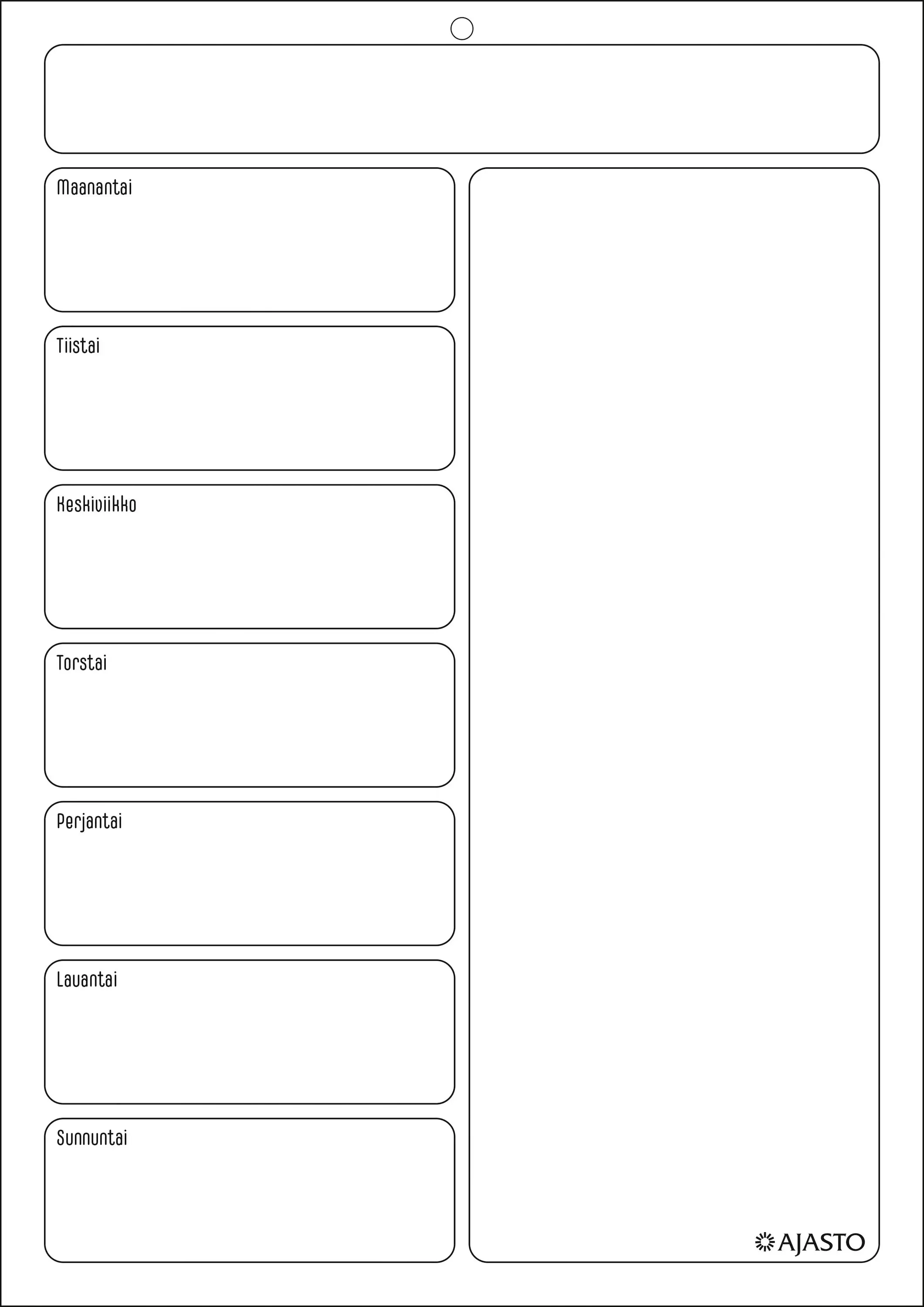 Magneettinen viikkokalenteri jääkaapin oveen. Kalenteri pysyy kiinni maalatuissa metallipinnoissa. Mukana tussit, joiden teksti on pyyhittävissä.