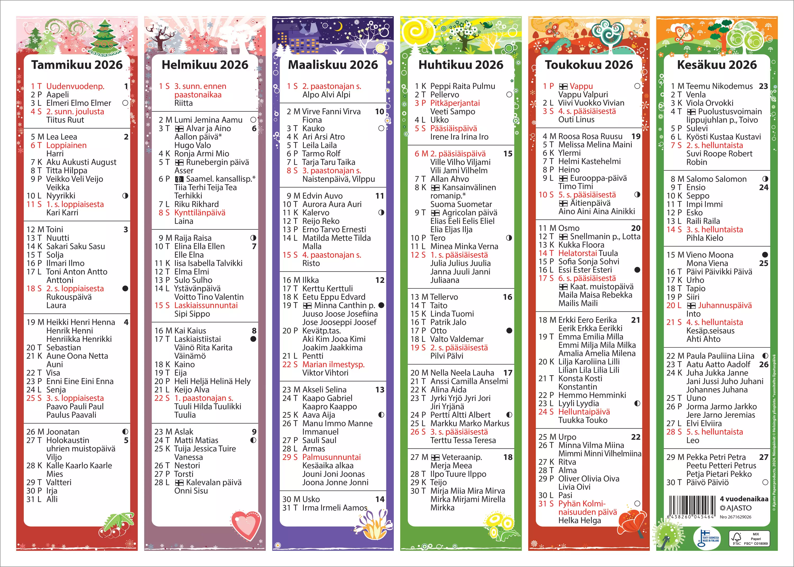 Koko 490 x 350 mm kirkkopyhät ja juhlapäivät runsaasti nimipäiviä tukevaa kartonkia Avainlippu-tuote FSC®-sertifioitu tuote.