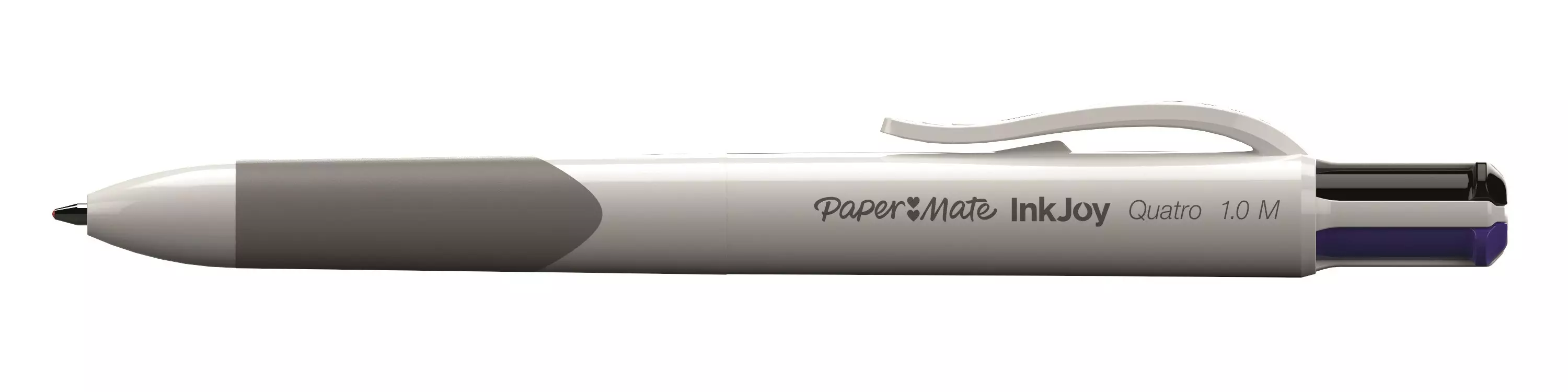 Paper Mate InkJoy 4-väri kuulakynä. Pehmeä kirjoittaa, luotettava, viiva ei katkeile. Pehmeeä reunainen mekanismi & kuminen otealue.