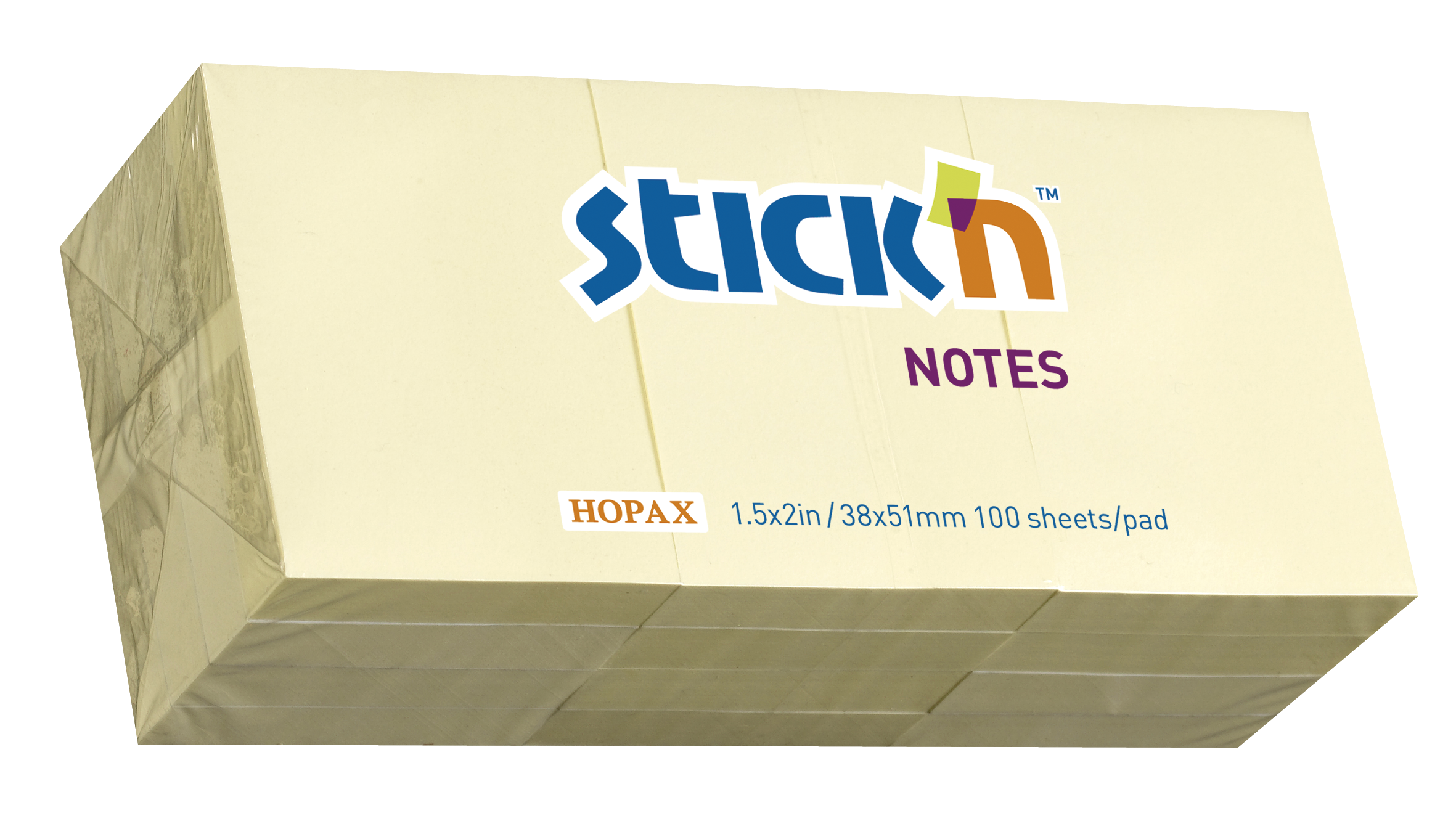 Stick'n viestilappu 50 x 40 mm, keltainen. 100 lappua/nide. 12 nidettä/paketti.
