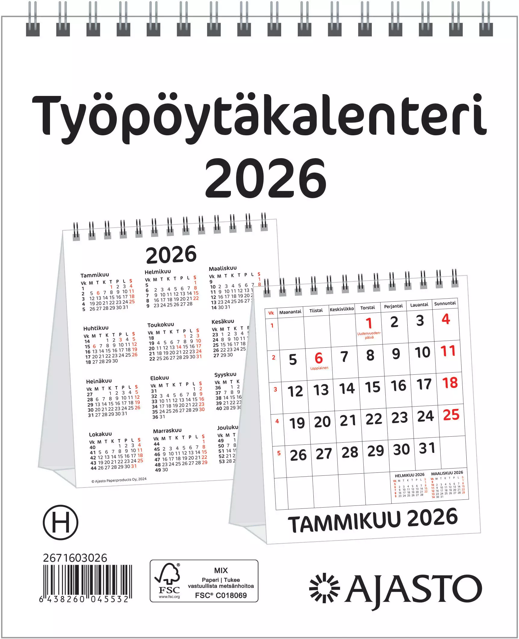 Kätevä työväline toimistopöydälle. Koko 145 x 175 mm etupuolella kuukausi ja takana vuosi Avainlippu-tuote FSC®-sertifioitu tuote.